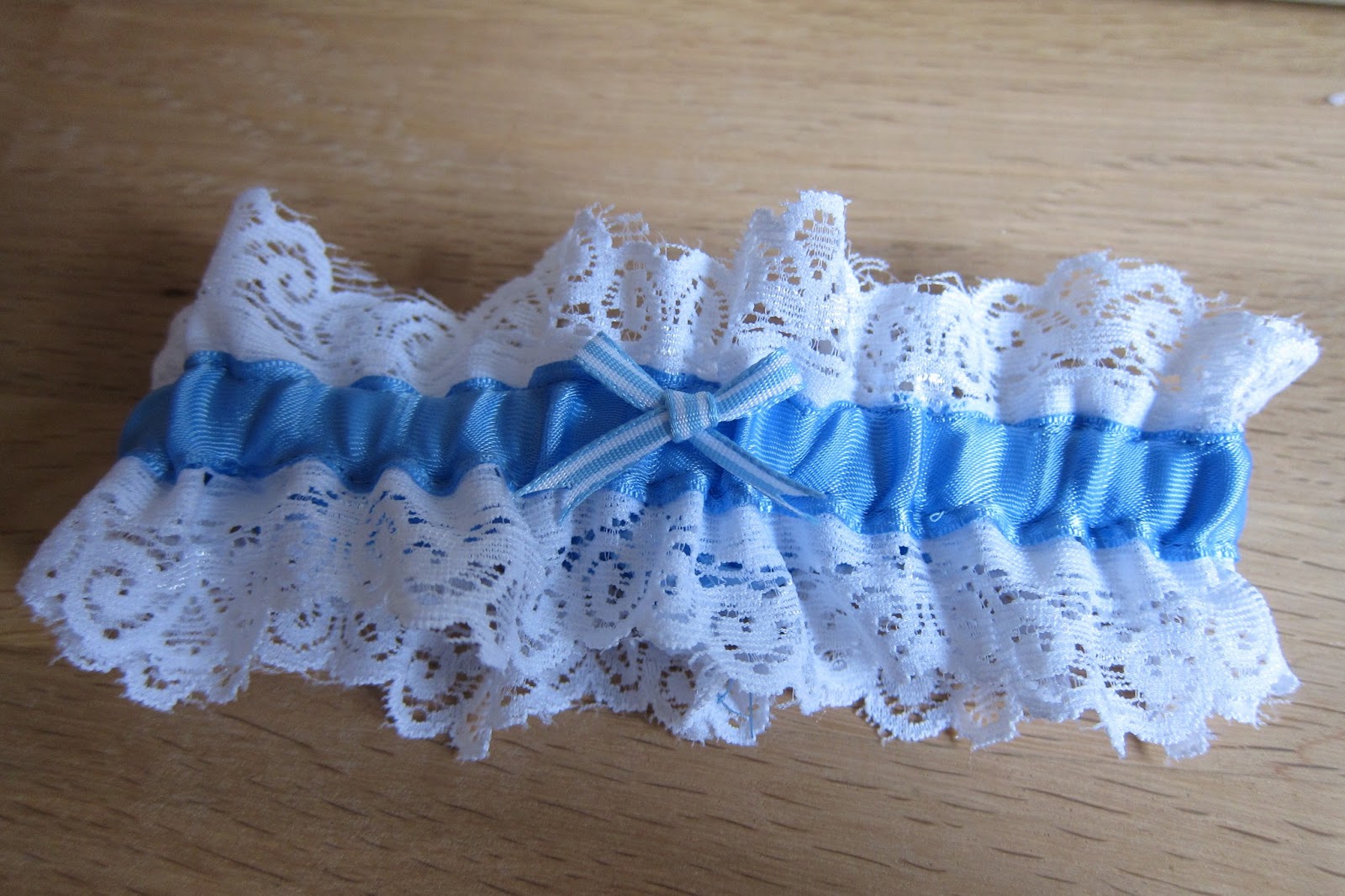 I created a handmade garter as a special gift for the bride-to-be. I knew she didn't have 'something blue' so I made a pretty garter using pretty baby blue ribbon and tied striped ribbon into bows for extra details. I hope that the handmade garter will be something that can be handed down in time and be someone's 'something borrowed' and 'something blue'.