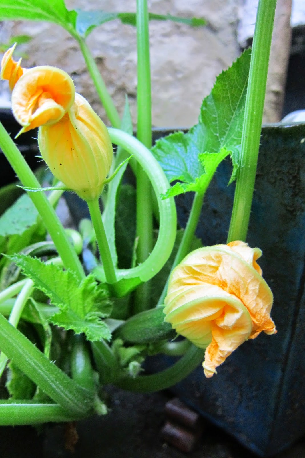 I've got three courgette plants and all are grown from seed and are starting to flower. I can't wait to see if we get courgettes this summer. If you look closely you can see one growing already!