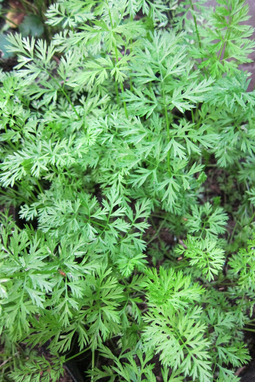 The carrots are growing and I really hope there is something in the soil below all the greenery!