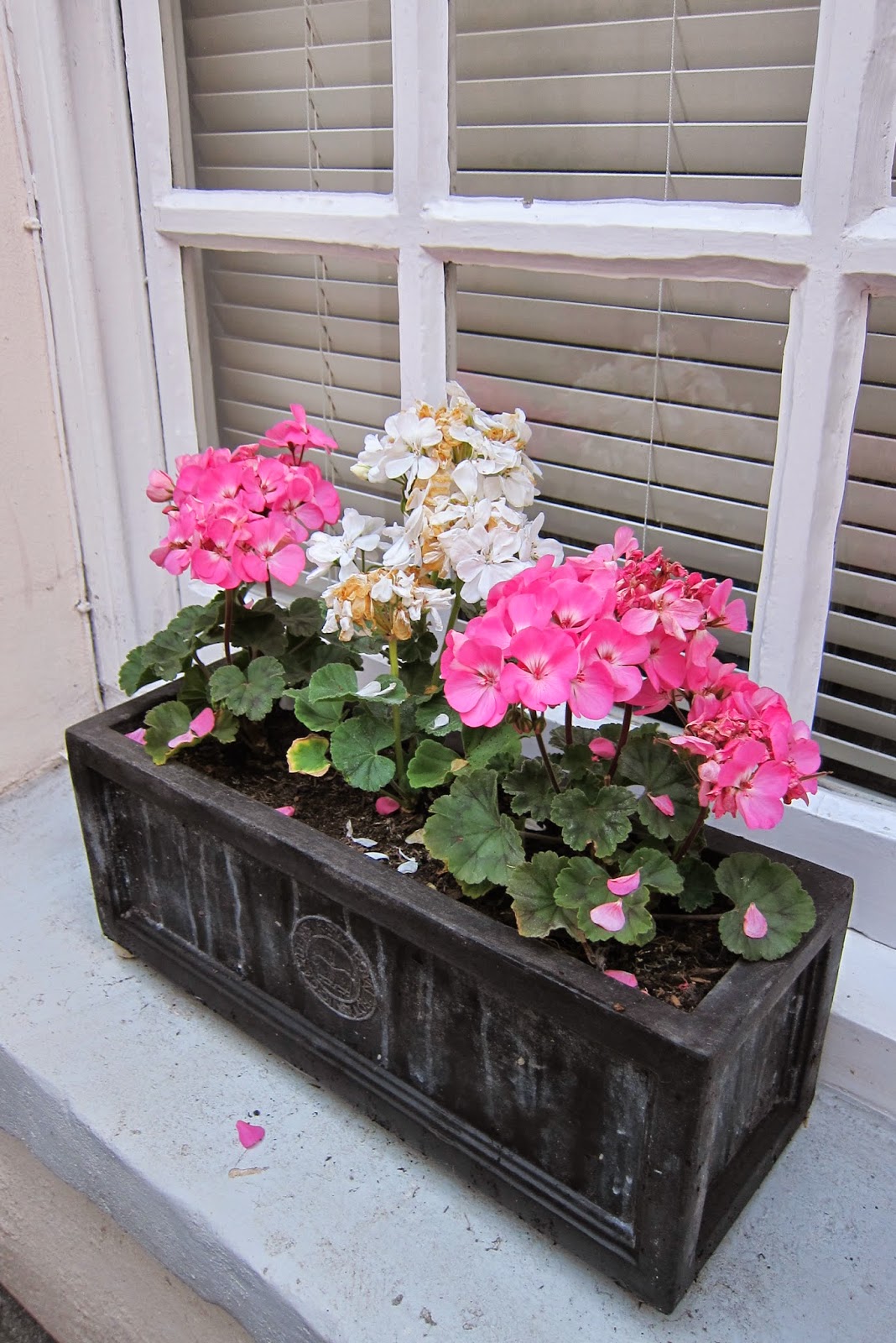 I perked up our window boxes with some pink and white geraniums, they make me smile each time I open our blinds. The heat and sunshine got to them this week.