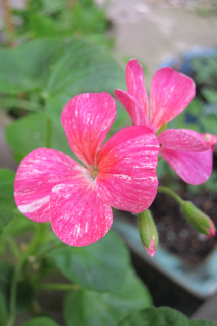 The geraniums I grew from seed last year are doing well and starting to flower.