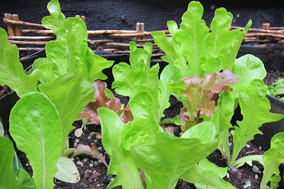 The lettuce seeds I tried to grow didn't grow well so I bought a little gems and lollo rosso and also some rainbow chard plants. They are looking healthy and starting to establish themselves in our planters.