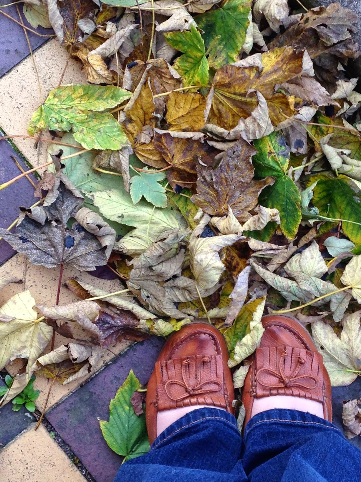 Crunching...autumn leaves underfoot and watching the leaves dance along the road on breezy days