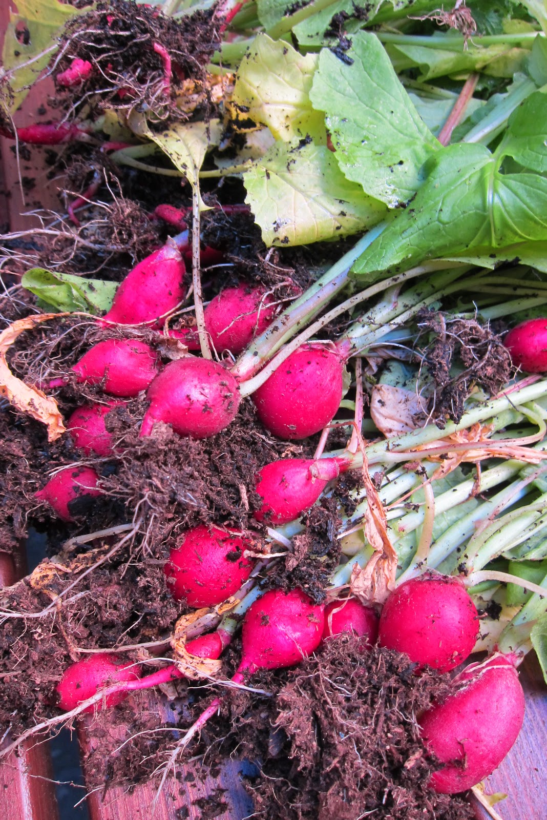 The radishes grew in small batches, I've found that those at the front of the window box have been doing better than others...