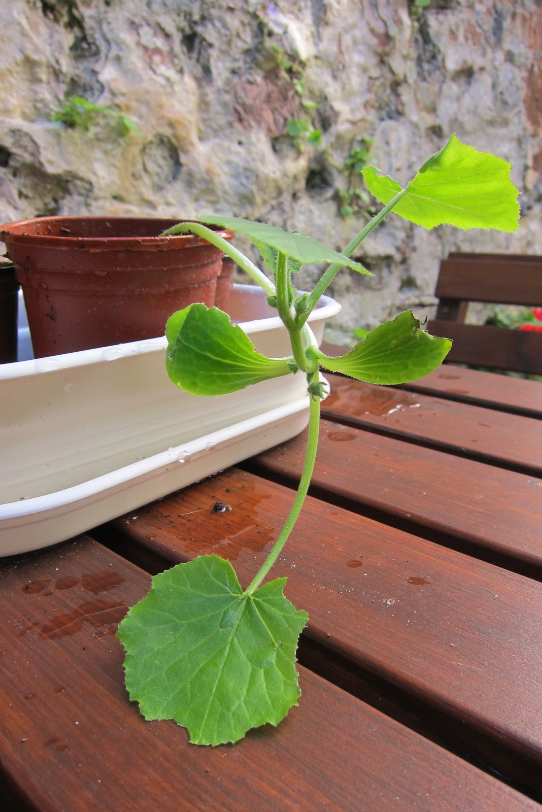 I've been a bit late planting up my courgette plants. I have three that I've grown from seed and they are getting themselves established. Tonight I got home from work and planted them into larger pots in the hope that they will grow over the next few months.