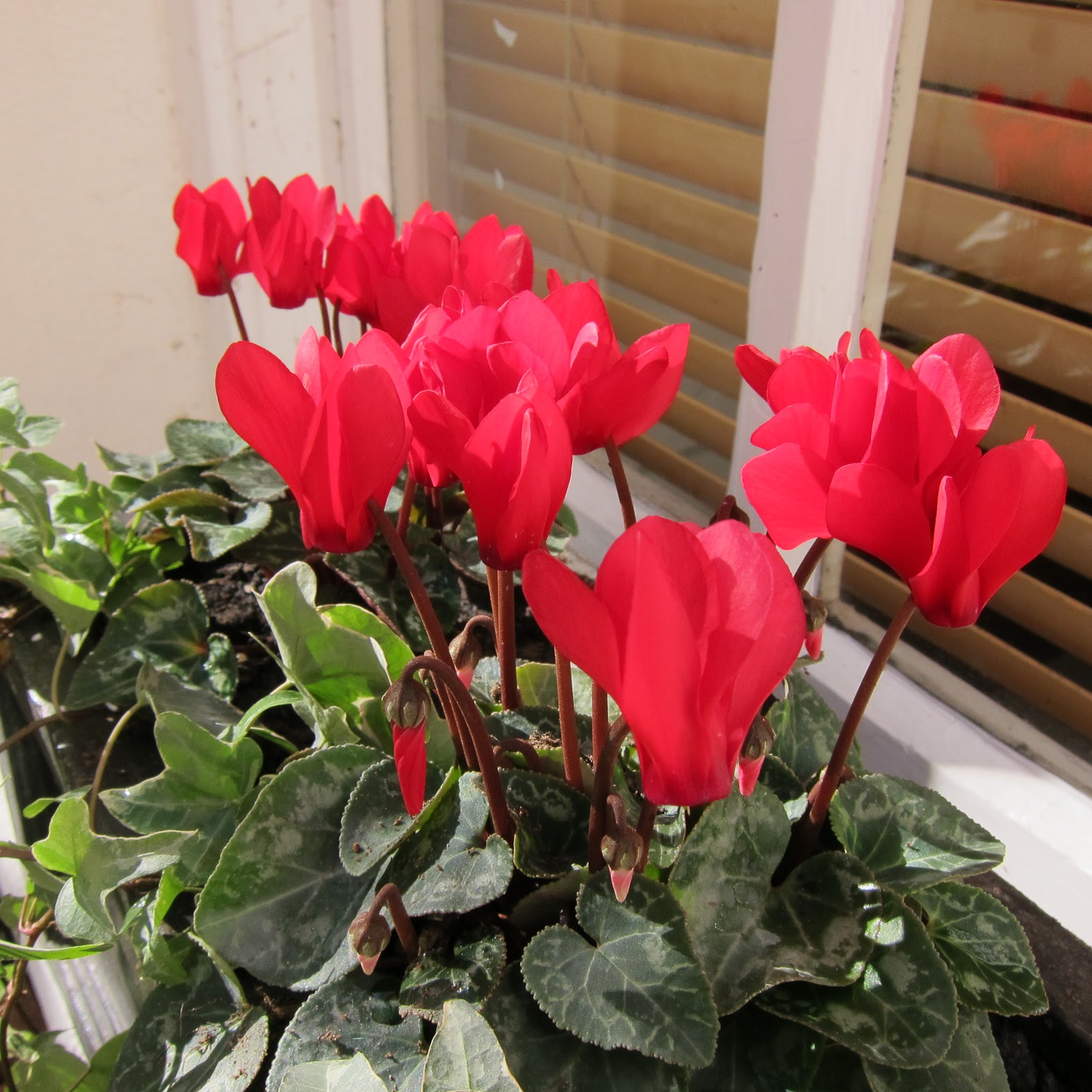 I emptied my window boxes, keeping the geraniums and planting them into small pots to keep over winter in my cold frame greenhouse. In their place I planted red cyclamen and ivy into my window boxes, creating the same arrangement for each front windowsill. These new plants will hopefully last into the new year and add a bit of colour during the grey and dreary months ahead.