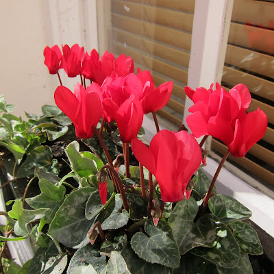 I love the combination of delicate cyclamen flowers and the trailing ivy. They are so pretty!