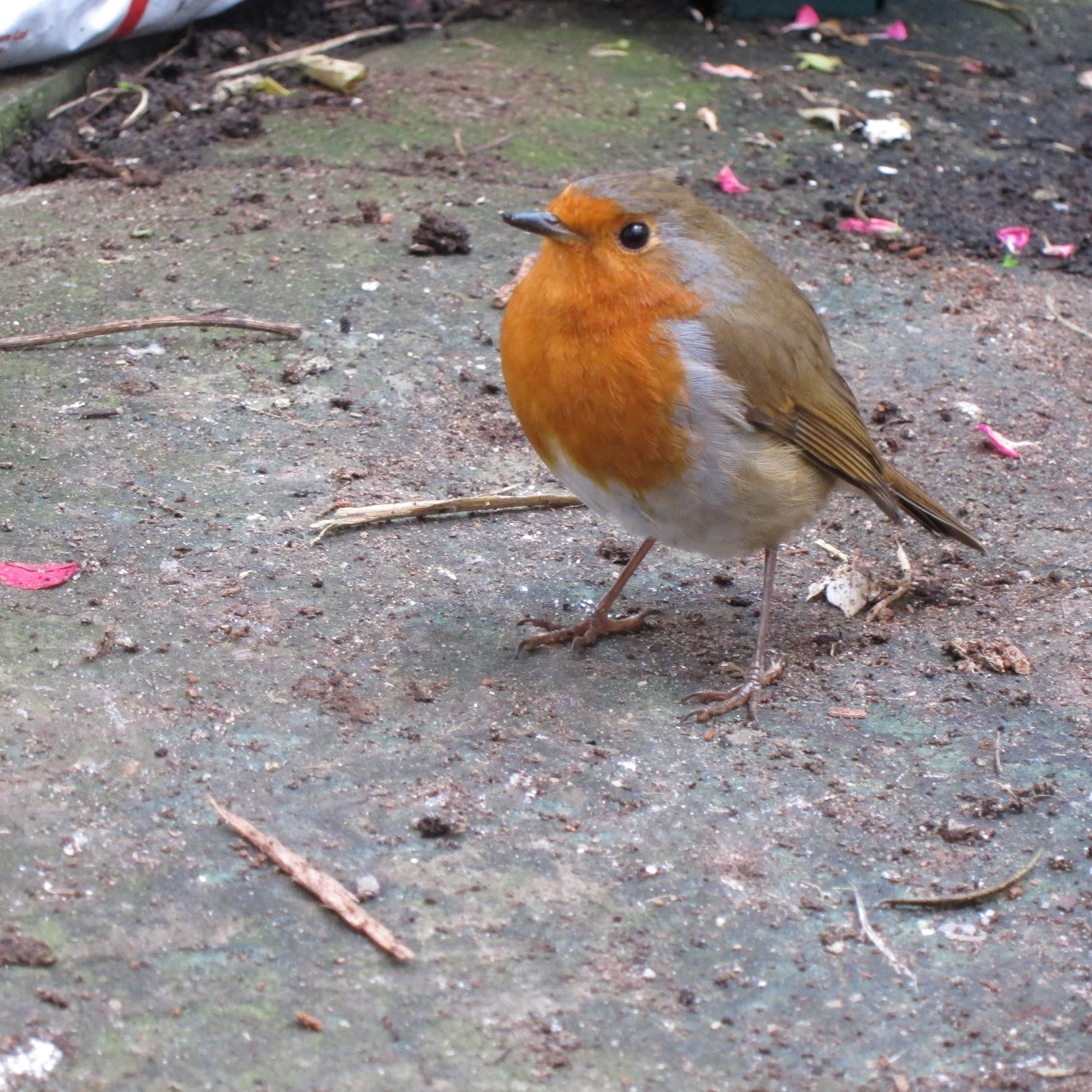 A very friendly robin enjoying all the worms and slugs that I found when I moved the pots around!