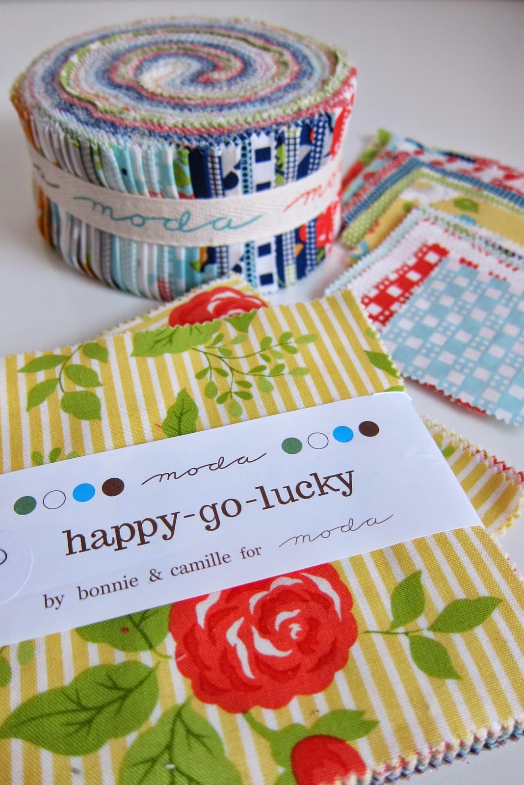 For a few years now I've been (unhealthily!) lusting after fabric by Bonnie and Camille for Moda and over the past two weeks have finally made the decision to take the plunge and buy the Happy-Go-Lucky fabric range with 40 different prints. It's gorgeous, bright, happy coloured fabric with a wide variety of prints and patterns that all look so lovely together.