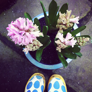 Finally I potted up some pink and blue hyacinths that I’d bought...and look how they’ve bloomed...