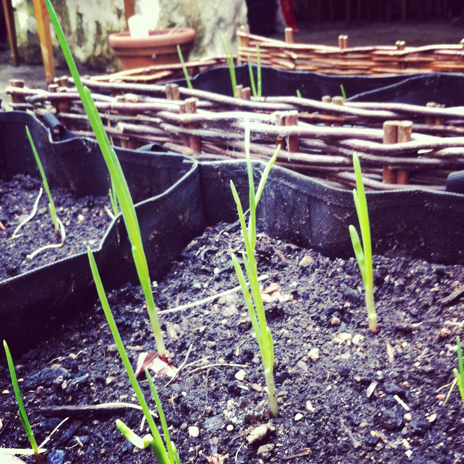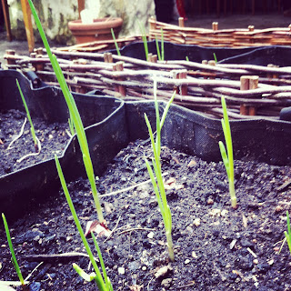 Over the past few weekends I’ve been preparing our courtyard garden space ready for Spring. I’m really enjoying being outside in our courtyard at the weekends, whether I'm tidying up our little space, looking at the plants coming back to life after winter or pootling around planting things in various containers. Being in the fresh air is such a great way to have space for time to think and clear your head of the weekly goings on. A few months ago in my post Planting Onions I was hopeful that the onion bulbs I planted were going to do something! I'm proud to let you see that they are coming on nicely!